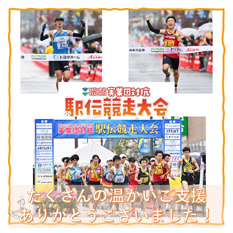 多くの皆様による温かいご支援により、第65回中部・第55回北陸実業団駅伝競走大会(田原駅伝)